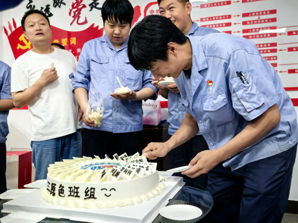 學(xué)習(xí)結(jié)束后,就進入了第二個班組活動——回顧往昔,慶祝“三原色”三歲生日。磨工班組的成員們齊聲喊出“磨工班組三歲啦!”,有人趕忙去拿蛋糕,有人忙著搬桌子,還有人拆蛋糕包裝。組員彭高和高強小心翼翼地拿著蛋糕轉(zhuǎn)來轉(zhuǎn)去,認(rèn)真找著合適的角度,想把這開心的一刻拍下來留作紀(jì)念。作為這個大家庭的一員,每個人都在用心為這場慶祝活動出力,充分展現(xiàn)出團隊的凝聚力 。