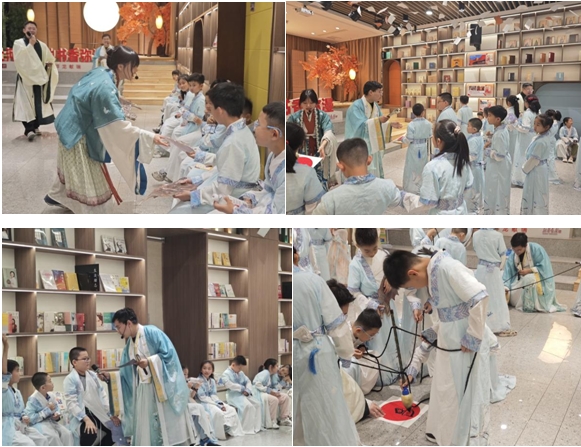 家長(zhǎng)陪伴孩子們完成《洛神賦》知識(shí)問(wèn)答,在古雅的場(chǎng)景中構(gòu)建起文化對(duì)話的橋梁。此次“書香+親子”模式讓抽象的文化符號(hào)轉(zhuǎn)化為可感知、可參與的成長(zhǎng)養(yǎng)分,當(dāng)孩子們捧著《洛神賦》文創(chuàng)禮物離場(chǎng)時(shí),傳統(tǒng)文化的種子已隨水拓畫的漣漪、毛筆字的墨香悄然扎根。
