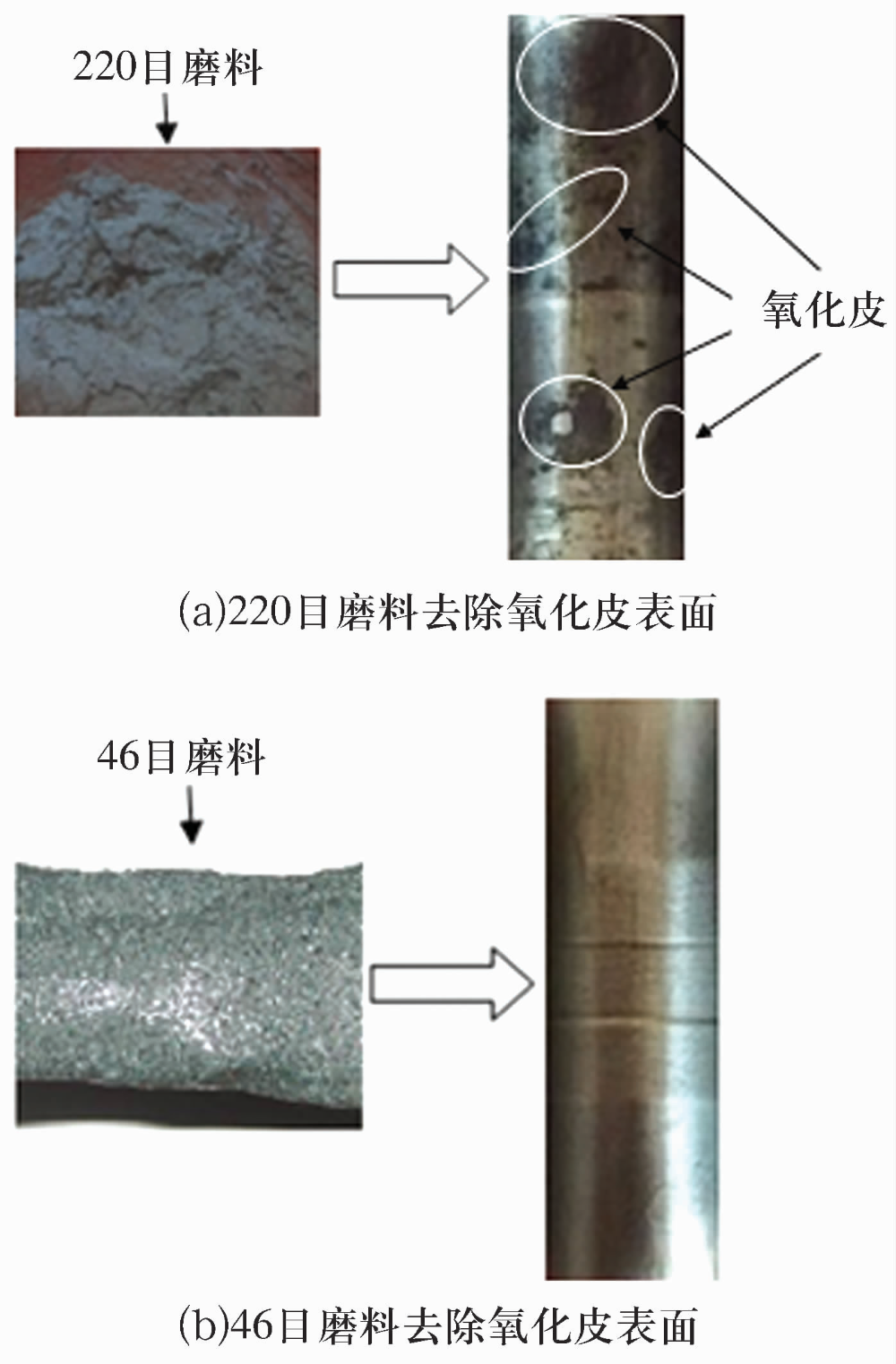 2)采用的黏彈性碳化硅磨料粒徑應(yīng)與被去除氧化皮表面相匹配,若去除氧化皮較厚且表面較祖糙的毛坯面,應(yīng)選用較粗氮化硅磨粒;若去除氧化皮較薄且表面較光滑,則需選用超細(xì)碳化硅磨粒。