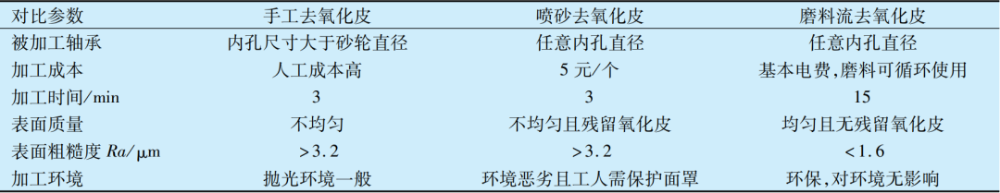 5)與傳統(tǒng)手工和噴砂加工法相比,采用磨粒流加工方法去除氧化皮在經(jīng)濟(jì)性、加工質(zhì)量、綠色加工等方面的優(yōu)勢更顯著。