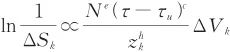 式中△Sk代表單元體積幸存概率,N代表每一轉(zhuǎn)的應(yīng)力循環(huán)次數(shù),τ代表滾道接觸下的切應(yīng)力,τu代表材料的疲勞極限切應(yīng)力,△Vk代表應(yīng)力作用的單元體積,zk代表應(yīng)力作用深度,e、c、h代表通過(guò)試驗(yàn)確定的Weibull參數(shù)。