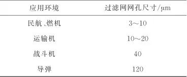 表1 不同應(yīng)用中的潤(rùn)滑油過(guò)濾網(wǎng)過(guò)濾精度