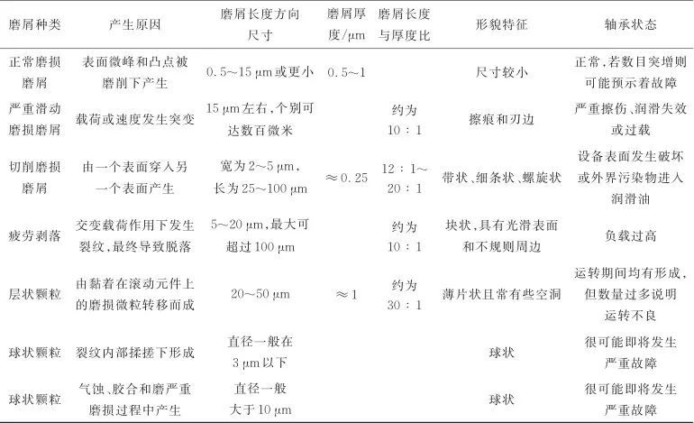 表2 主軸軸承運(yùn)行中黑色顆粒產(chǎn)生原因、尺寸范圍、形貌特征及含義[18,60?63]