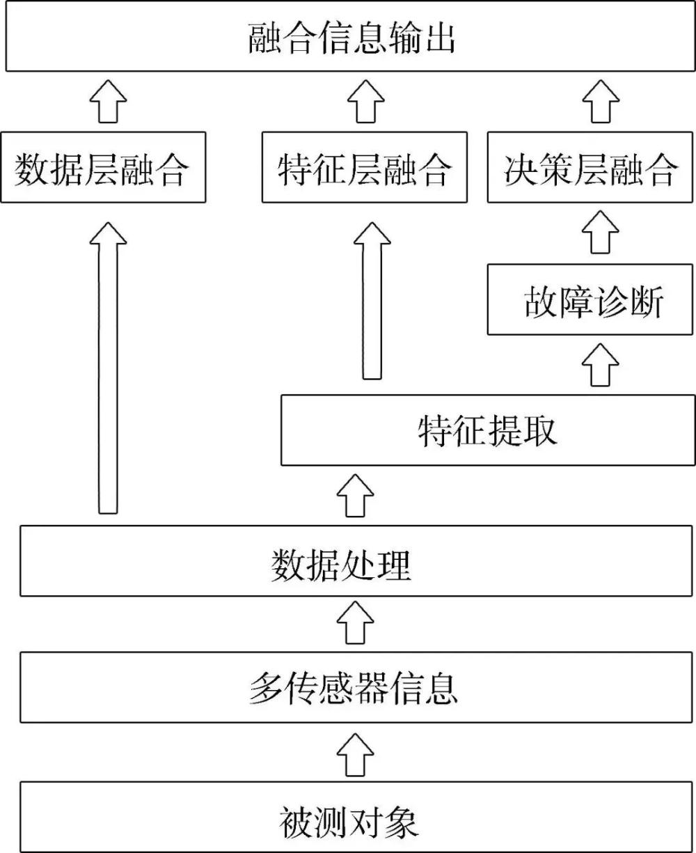 按照數(shù)據(jù)抽象的層次,融合可以劃分為3個(gè)級(jí)別,數(shù)據(jù)層融合、特征層融合及決策層融合,見圖7。